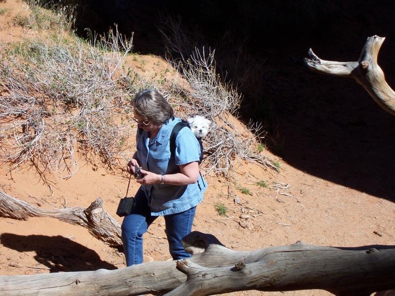 ...hiking in Utah at Arches Nat Monument with Sarah tagging along in the backpack...